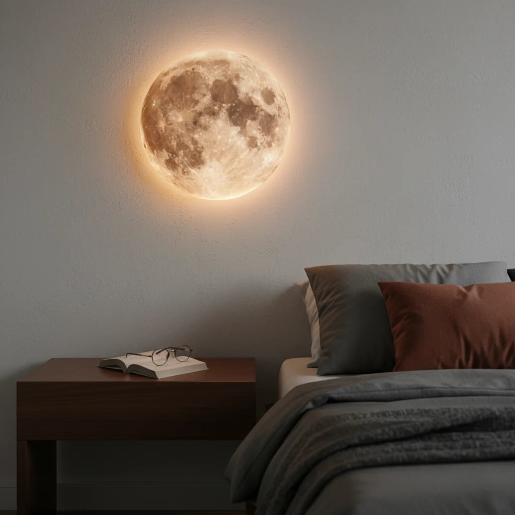 La Lampe Murale Lunaire est un excellent choix comme veilleuse. Sa lumière douce n'est pas intrusive et aide à créer une atmosphère apaisante, idéale pour s'endormir paisiblement.